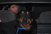 Vi stod længe i silende regn og ventede men endelig kom den røde transporter og Barteks vens bil med hundene. Hundene var glade for endelig at komme ud af bilen og møde deres nye forældre og der kom vist en tåre eller to da vi endelig så de dejlige hunde.