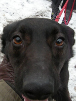 Det går forrygende godt med Solo, han er faldet rigtig godt til herhjemme og begyndt at lære "dansk" :). Han tager det simpelthen så flot at være alene hjemme de få timer, han ligger bare og slapper af i sofaen indtil at vi kommer hjem igen fra arbejde og der har ikke været nogle uheld overhovedet. han har fået sig en legekammerat men han er ikke helt vild med at lege med andre hunde endnu men det kommer sikkert en dag, til gengæld er han en lille vildbasse når Cecilie og Solo er ude og lege i sneen.