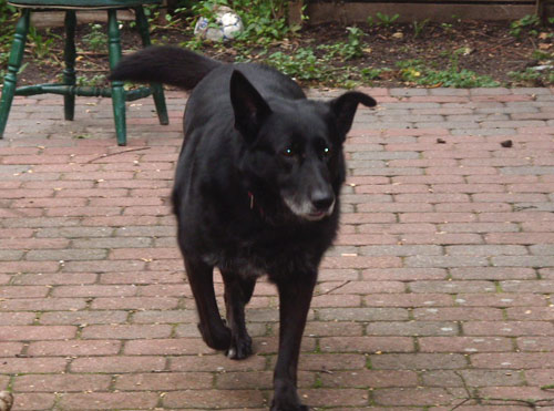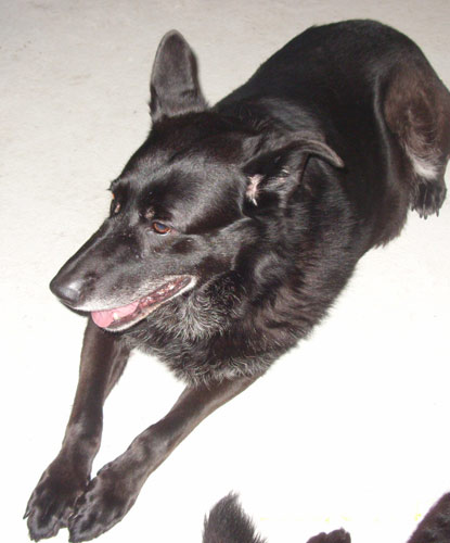 Hun er en superdejlig hund, hun er fredelig og godheden selv. Hun elsker at blive nusset og kælet med - og kan til tider også få nok kæl, men så smutter hun bare hen og lægger sig. Hun overraskede fra første stund - man kan bestemt ikke mærke at hun har boet på internatet i så lang tid som hun har - hun har været renlig fra første dag og siger selv til hvis hun skal noget. Hun er en pænt stor hund, det ser ud til at der kunne være noget sort schæfer i hende, men uanset hvad så er hun jordens skønneste og mildeste hund. hun kan godt li' selskab fra halvstore børn.