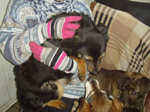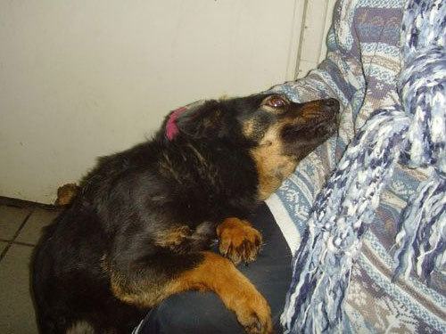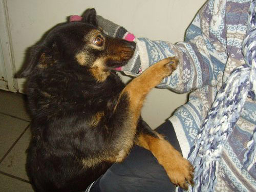 har opdaget at hun kan smutte ind til hvalpene og få lidt mad der. Hun får ro derinde samtidig med at hun tager sig lidt af ungerne. Da hun ankom til internatet var hun selv med hvalpe. Hun er virkelig en dejlig vovse som er rimelig lille, men med et stort godmodigt hjerte - hun er enormt kælen og vil bare så gerne have lidt varme og nus.