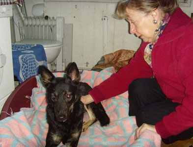 På billederne ses Adams mor, som tager afsked med Safira - hun var utrolig ked af hele situationen, både på vegne af hendes søn, men også for denne dejlige hund som syntes at være kommet ud af den blå luft for at hjælpe Adam igennem en svær tid, men så blot få at mærke den svigt der så nemt kan ske hunde som Safira - at skulle føle sig fortabt igen, som dengang hun i afmagret og slem tilstand søgte ly på hjemmet.