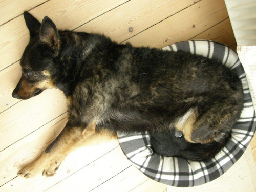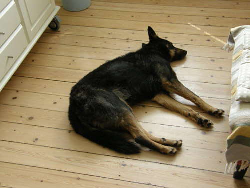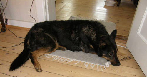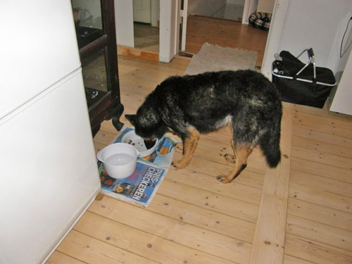 Selvom hun har haft mulighed for det, har hun ikke været oppe i nogen af møblerne, men holder sig til gulvtæpperne eller sin nye seng. Hun har ikke sagt et kny, siden vi fik hende overdraget og hun har ikke udvist nogen form for agression, hverken over for os eller hunde vi har mødt på vores vej. Til gengæld springer hun glad omkring, når hun skal have halsbånd og snor på, og når vi kommer ud fra kiosken, hvor hun har stået pænt og ventet i et par minutter.