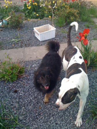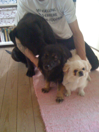 Den lille polak her er en vandhund, (Cezar/Simba) Vi havde ham med til stranden forleden aften, og han vadede lige ud og svømmede rundt som om han aldrig har bestilt andet. Han er meget lydhør. Når vi skal ud og køre springer han glad op i bilen. Det går stadig fint, og han er faldet godt til. ;-) Vedhæfter lidt billeder. Den hvide og brune Am-bulldog er Bailey naboens hund som gerne kommer ind og leger. Den store brune er Tulle og de ligger og sover sammen om natten.God sommer... Hilsen Tanja