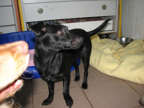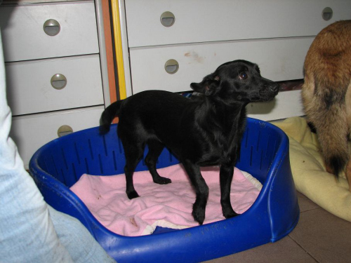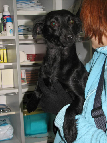 Hun blev fundet i et hul i skoven tæt på internatet sammen med nogle hvalpe (desværre overlevede de ikke alle sammen.)