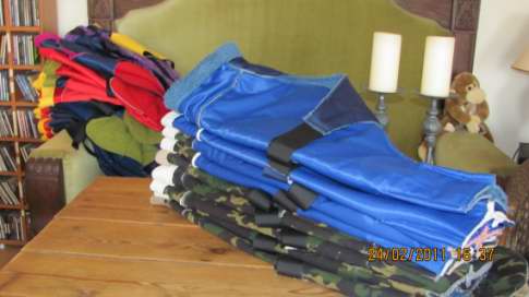 Vi har ca fået 50 dækkener i forskellige størrelser og 15 dejlige liggeunderlag.