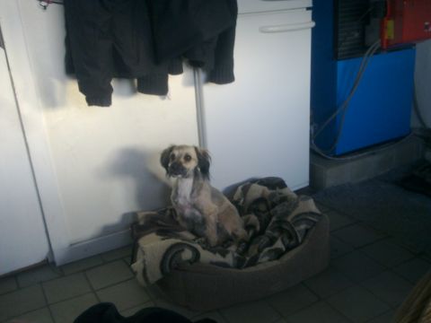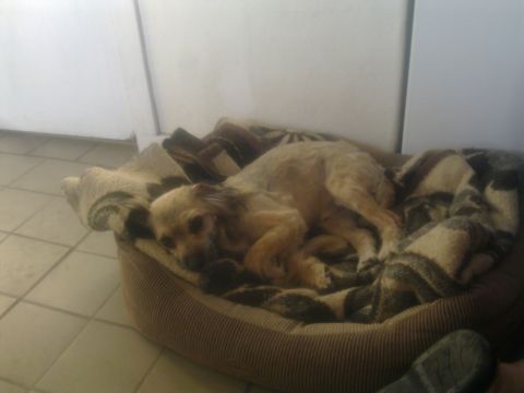 Maria og Thomas tog over og hentede ham og ville passe ham til vi fandt et nyt hjem til ham.