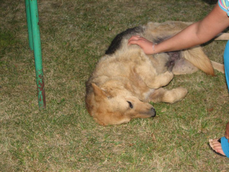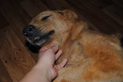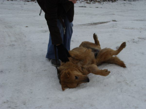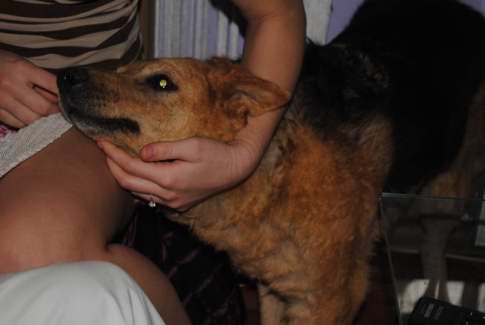 Lesna boede i skoven i omkring 9 år - så længe har bestyreren fodret hende hver dag kl 21 om aftenen. Man har forsøgt at fange hende i al den tid men hun ville ikke fanges - så efter 9 lange år i november 2009 kom Lesna en dag helt hen til bestyreren for at få hjælp. Lesna blev anbragt på internatet men takket være søde sponsorer er hun i dag i kærlig pleje. Man må sige at Lesna er noget af en kælepotte hun elsker simpelthen mennesker og af alt at få mavekæl. Vi håber så inderligt at nogen har plads og hjerterum til at give hende nogle lykkelige år som familiehund - hun er en søn skøn hund der om nogen fortjener et hjem .
