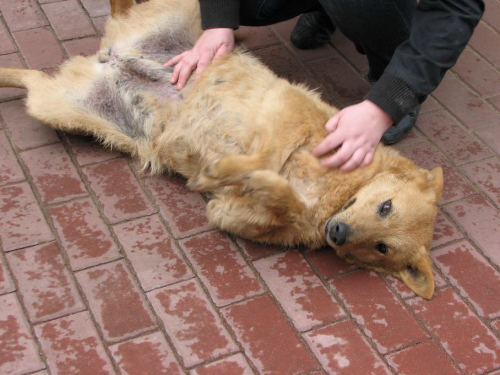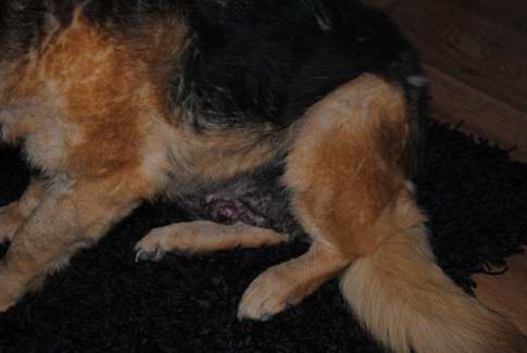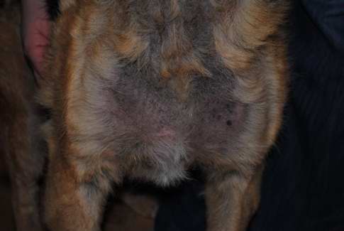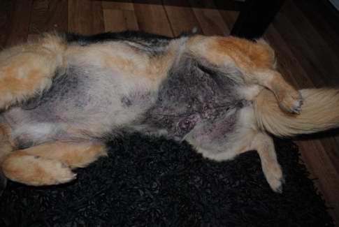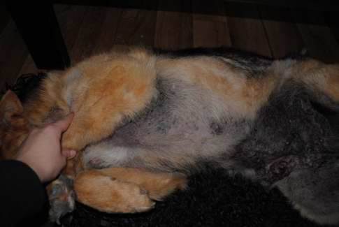 Det klør ikke så meget mere og hun kradser ikke mere og pelsen er ved at komme tilbage.