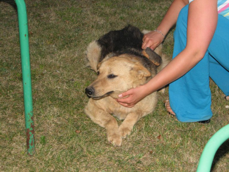 Lesna hygger sig med plejemor - men savner stadig sin helt egen familie - Lesna er en rigtig hyggehund der elsker at blive børstet - ja hun elsker bare al opmærksomhed - vi krydser fingre for at der er en familie der vil tage sig af Lesna