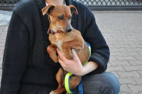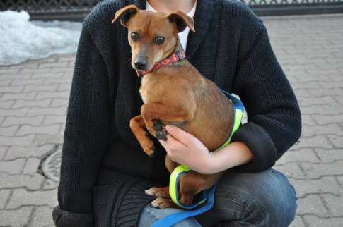 Rys blev bragt til os denne vinter. Han havde ligget ca. en uge i læ af en bymur, uden nogen havde hjulpet ham. Heldigvis kom der så et rart menneske forbi, og nu er Rys hos os (Ola og Iwona). Efter 2 dage havde han næsten fået varmen igen. Han er en lille hund på bare 5,5 kg og vi mener han må være omkring 2-3 år, så der er stadig mange gode år i ham. Han er en rigtig charmetrold og vil helst bare sidde på skødet og nusses. Mennesker er dejlige og tæver er helt klart også et hit. Han er stadig lidt genert, men han er utrolig sød.
