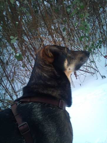 Det går forrygende godt med Solo, han er faldet rigtig godt til herhjemme og begyndt at lære lidt "dansk" :). Han tager det simpelthen så flot at være alene hjemme de få timer, han ligger bare og slapper af i sofaen indtil at vi kommer hjem igen fra arbejde og der har ikke været nogle uheld overhovedet. han har fået sig en legekammerat men han er ikke helt vild med at lege med andre hunde endnu men det kommer sikkert en dag, tilgengæld er han en lille vildbasse når Cecilie og Solo er ude og lege i sneen :D Solo har været med ude hos Cecilies hest et par gange og han tænkte først wow det var lidt nogle store "hunde" men han syns faktisk de er rigtig søde han går med rundt ude hos hestene på folden og hygger med hestene og når den store hest i flokken kommer over til ham slikker han hende på næsen :) så det tager han rigtig flot. Dog bliver han lidt vild når der kommer katte, men vi må bare lære ham at kattene også skal være her.