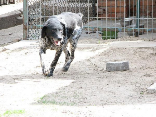 Han kan har det meget dårligt med livet på internatet - han er blevet mere stille på det sidste. Wyzio er meget glad for at lege med hunhunde.