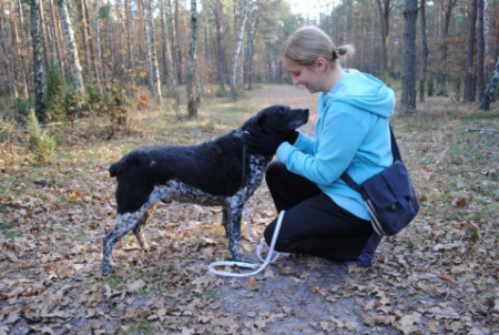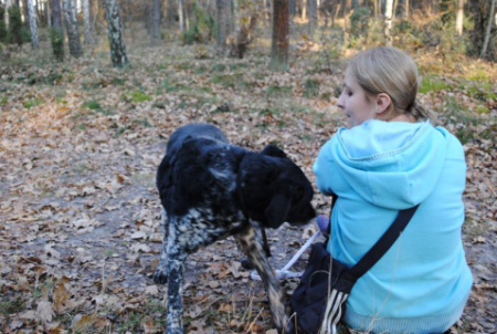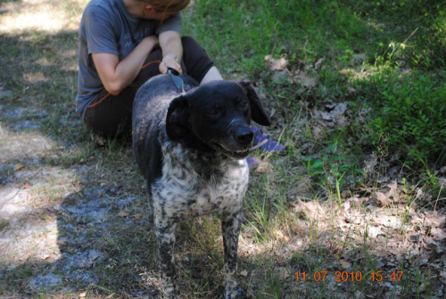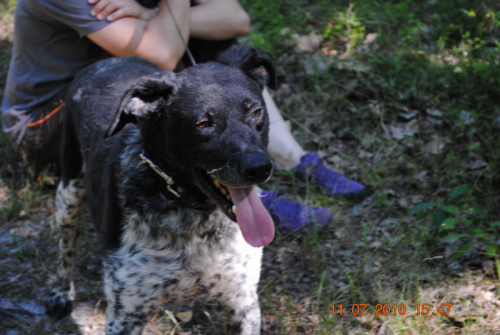 Han stoler 100% på mennesker og han kommer løbende logrende med den lille stump hale han har når han ser et menneske - han vil så gerne have konakt hele tiden - blive nusset og kælet for.