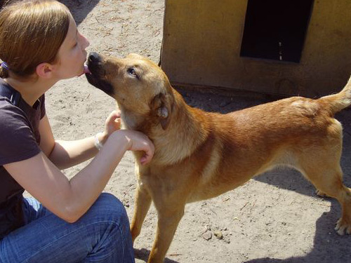 Når han ser mig, ved indgangen til internatet er han ligeglad med om der er 40 hunde i vejen – han løber som besat for at komme hen til mig og giver mig 1000 kys – Rudy er en meget kærlig hund