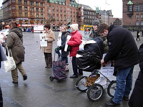 Vores Jette og mand ved barnevognen og Liselotte og co. i den beige frakke