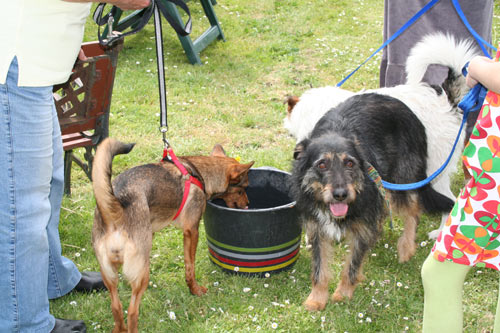 Nogle temmeligt tørstige hunde - Kiri og Tonka