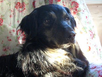 Buster som han havde det i internatet - der er klart sket en forandring i hans øjne... fra håbløse og triste til glade og trygge :o)