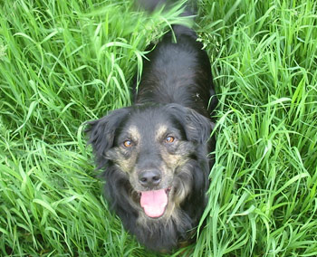 En lille hilsen: Så er Buster ved at føle sig til rette her i det skønne Nordjylland. Vi har forgæves kaldt på ham med hans gamle navn, Mieszek, men der var absolut ingen reaktion. Jeg huskede at have læst et sted om hundeadfærd, at nogle hunde kan have dårlige associationer med sit navn. Men nu ved vi jo slet ikke om han er blevet kaldt ved sit gamle navn, da vi går ud fra at han er blevet navngivet af internatet eller Ewa. Men nu har vi ihvertfald givet ham navnet Buster og allerede på andendagen reagerede han på 'Buster' og 'Buster, kom'. Han drøner op og ned af trapperne og har fundet sig et 'helle-sted' ovenpå...i øjeblikket er han dog for nysgerrrig til at gemme sig og mænger sig fint med de andre. Vores 2 gutter Sesam og Bamse har altid haft nogle for-sjov-brumme-knurre-lege og det har intet med Buster at gøre, men det skræmmer ham en smule tror vi, men det er bare indtil han finder ud af at de ikke gør ham noget ondt. Trille den ældste hund og lederen af flokken kan ikke rigtig finde ud af ham endnu..han er nemlig ikke så villig til at komme hen og sige goddag ( altså snuse numse og vice versa ) og det forsinker jo hele processen en smule...han er dog helt vild med Minnie og hun har vist sig at være en ideel diplomat. Han er ikke skræmt, men meget forsigtig - men han kan vist ikke modstå sin nysgerrighed og er bare nød til at gå på opdagelse hvilket er superfint, på den måde kan han lære det hele at kende og de andre kan mere og mere vænne sig til ham.