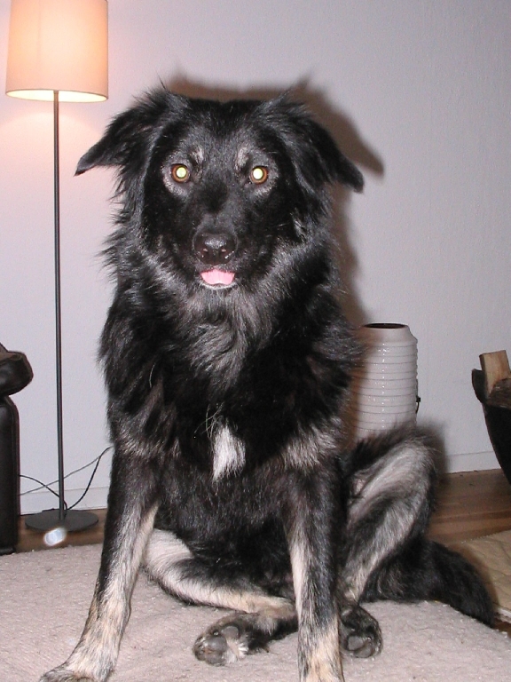 Hos Jette og Henrik i Stenløse. Ronja's familie skriver: Jeg vil hellere end gerne fortælle om vores dejlige Ronja pige. Hun er den skønneste hund på jorden, selvfølgelig sammen med vores anden hund Lady. Hun er sød, fræk og kælen - ser ud som den mest uskyldige pige og så er hun bare så fræk som en hundehvalp......ingen tror på mig når jeg fortæller det! Når hun er fræk graver hun huller i vores have, løber efter kattene selvom hun godt ved at hun ikke må, bider Lady i bagbenene for at hun skal løbe efter hende, bider os i buksebenene hvis hun ikke lige får opmærksomhed nok - i hendes egen vurdering, gør ad cykelister i skoven er hendes nyeste påfund -dette syntes vi dog ikke er særlig morsomt, så der får hun skældud - og når hun får det, sætter hun sig ned og ser meget betuttet ud og går ingen steder før vi er blevet gode venner igen.....dette sker dog meget hurtigt, da hun er svær at være sur på.