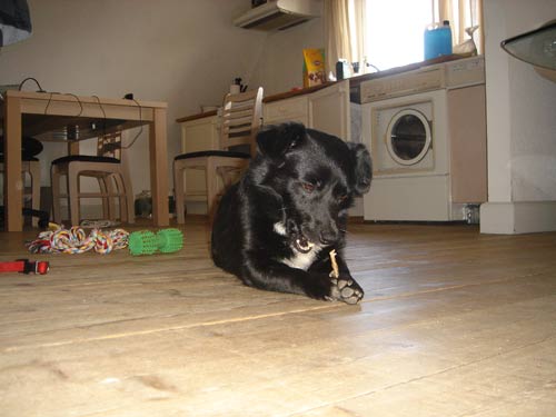 BAczek kom hjem til Danmark d. 21. januar 2007. Han blev adopteret af Heidi og Christian, som begge var meget spændte på at få ham at se. De vidste godt at han kom hjem med et par skavanker, hvor den ene var et dårligt ben, som dyrlægerne i Polen gættede på var fra en gammel skade. Men på trods af dette ville Heidi og Christian gerne have ham hjem til sig. Ikke ret langt tid efter han var kommet hjem fik vi den første melding om hvor dejlig og sød og nem en hund han er. Baczek kom hjem til to søde mennesker som havde muligheden for at give ham et ekstra godt hjem af slagsen, for der er altid nogen hjemme hos ham og han nyder det gode selskab dagen lang.