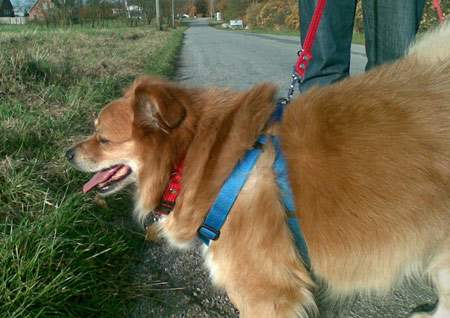 Lone og Erik adopterede Rudy igennem Gadehunde, da en ældre mand i Polen blev så syg at han ikke længere kunne beholde sine hunde. Den anden hund, altså Rudys tidligere bofælle, fik hurtigt et andet sted at bo, da en nabo besluttede sig for at hjælpe den. Rudy stod uden nogen aftagere, så Gadehunde besluttede at hjælpe ham med et midlertidigt hjem i pleje. Men der gik ikke længe, for så fik Lone og Erik jo øje på denne dejlige røde og vamsede hund. Rudy blev hentet hjem til Danmark ikke mange uger efter. I begyndelsen var der lidt problemer med ham og kattene, men med tiden løste det sig. Se her et uddrag af en hilsen fra Lone, Erik og Rudy :