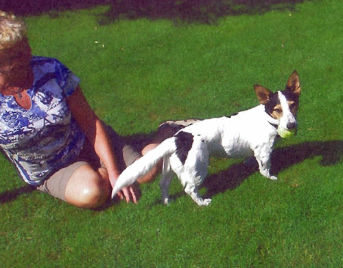 "Vi ventede spændt den Lørdag. Vi havde vidst i en uge, at Teddy skulle komme. Det var en glædelig overraskelse at han ikke var så stor, som vi troede - lige en hund for os. Han har allerede oplevet en masse; tur til stranden, hvor han blev lidt overrasket over de store bølger, men spændende ellers glad derudaf med selskab af 2 andre hunde.
