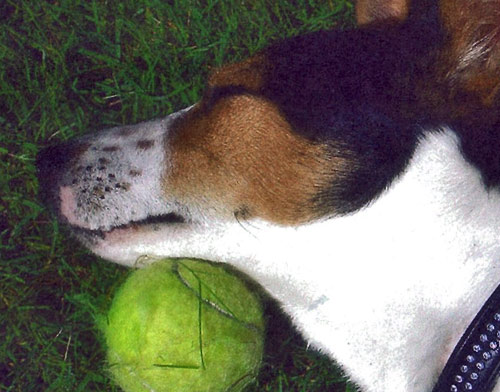 Nosek boede ikke så længe på internatet, men det vides ikke hvorfra han kom - han var blevet fundet på gaden og dernæst indleveret. Nosek ( "lille næse" ) viste sig at være et stilfærdigt og venligt gemyt - men ikke konliktsky som sådan. Han turde godt blive stående hvis der var ballade i hundegården, men Nosek har en bemærkelsesværdig evne til at kunne med stort set alle hunde - som om de med det samme kan se, at her er der ingen skjult trussel at finde. Nosek bærer præg af at have været en del af en menneskefamilie før, han er reserveret overfor helt fremmede mennesker, men når han kender dem er der intet til hinder for at nyde lidt kæl og nus.
