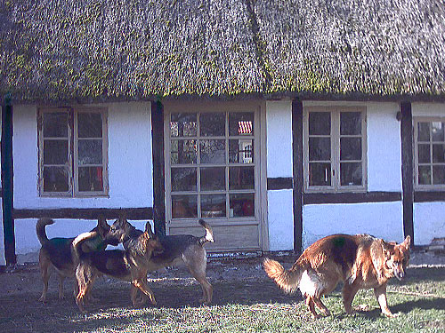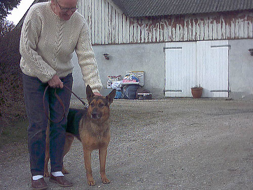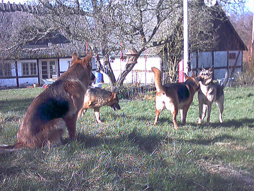 Skønne Remek som nu hedder Balder er kommet hjem til Bente i Rude. Her trives han på bedste vis med sine 2 nye schæfersøstre.