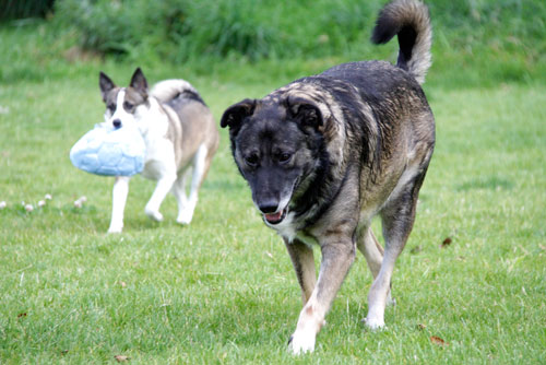 Rufus har det godt, han er glad og virker som om han er ved at åbne op. Han har vist tegn på at ville lege og pjatte lidt rundt, men han har en utrolig styrke, så der skal der også lidt træning til. Han er blevet glad for alle i huset og synes at have overskud til at lave sjov og hygge sig.