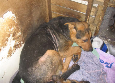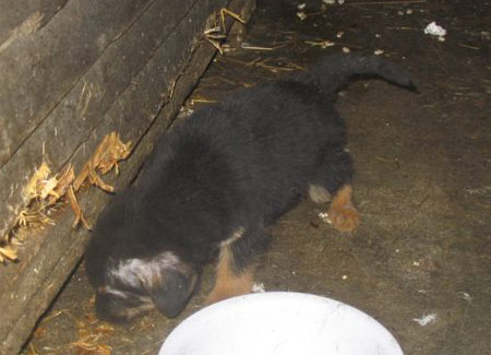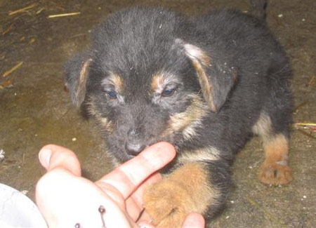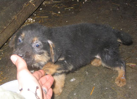 En dejlig ung schaefer hanhund, Chigo, blev afleveret på internatet af sin tidligere ejer .- han havde pludseligt ikke brug for ham længere, men hunden havde stadig brug for ham. Han blev først sat alene ind i et bur, men ikke længe efter fik han selskab af en hunhund, Nanna, og de fik naturligt nok hvalpe. Men internatet kunne godt se problemet med 10 hvalpe, så de aflivede 9 af dem lige med det samme og lod Nanna beholde 1, Kiko, som hun kunne dige og passe på.