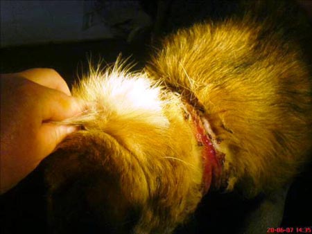 08.08.07: Luna har fået det meget bedre nu efter behandlingen. Hendes grimme sår hele vejen rundt om halsen er helet godt op og skal bare styrkes, så hun kan få lidt pels tilbage på halsen. Vi er meget glade for den hjælp vi får ind, det er dejligt med fælles indsats at kunne være i stand til at give en ellers fortabt hund en ekstra chance.
