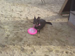 Den lille polak her er en vandhund, (Cezar/Simba) Vi havde ham med til stranden forleden aften, og han vadede lige ud og svømmede rundt som om han aldrig har bestilt andet. Han er meget lydhør. Når vi skal ud og køre springer han glad op i bilen.