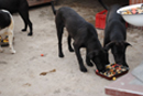 De dejlige ting som blev doneret til hundene på internatet har Ewa & co delt ud til hundene. Der var foder- guf- tæpper- seler-liner og skåle.