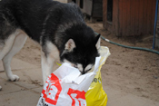 Der var indsamlet en masse dejlige ting til hundene på internatet - tæpper og en masse foder.