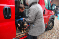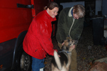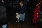 Vi stod længe i silende regn og ventede men endelig kom den røde transporter og Barteks vens bil med hundene. Hundene var glade for endelig at komme ud af bilen og møde deres nye forældre og der kom vist en tåre eller to da vi endelig så de dejlige hunde.