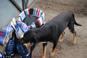 Vi har valgt at give dem til Ola og hun har fordelt dem til de mest udsatte hunde. De dejlige frakker er syet i tre lag og det yderste er i vandtæt stof så uanset, vil vovsen ikke gå med et vådt tæppe på sig. Jeg ( Dragana ) ringede Grethe op en søndag morgen og spurgte om hun kunne hjælpe Olas hunde med nogle frakker, og inden søndag formiddag havde hun fået fat i Lise som havde 18 frakker som vi måtte få. Grethe fik hurtig syet 7 store frakker og 7 dejlige uld underlag. Og inden Tirsdag havde begge de dejlige piger sendt dem afsted til Ola i Polen. Vi fra gadehunde siger tusind tak for den store hjælp I gav de 25 hunde. Tusind tak for at I selv sørgede for at de kom derned med jeres egen hjælp. Her er nogle billeder hvor I kan se de fine frakker og underlag.