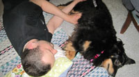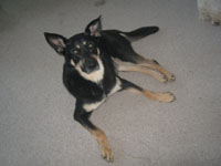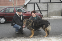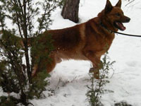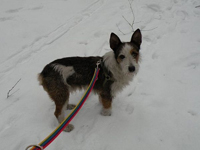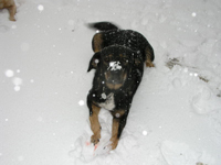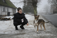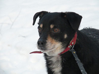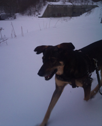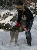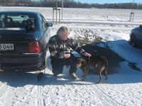 Det går forrygende godt med Solo, han er faldet rigtig godt til herhjemme og begyndt at lære "dansk" :). Han tager det simpelthen så flot at være alene hjemme de få timer, han ligger bare og slapper af i sofaen indtil at vi kommer hjem igen fra arbejde og der har ikke været nogle uheld overhovedet. han har fået sig en legekammerat men han er ikke helt vild med at lege med andre hunde endnu men det kommer sikkert en dag, til gengæld er han en lille vildbasse når Cecilie og Solo er ude og lege i sneen.