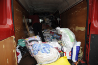 Jette fra Horsens har indsamlet en masse hundefoder og hundeartikler.