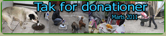 Der kommer hele tiden nye hunde til og vi er nået et punkt hvor vi ikke kan tage imod flere.Dette er aldrig sket før. Der er få adoptioner, hvilket heller ikke hjælper på situationen. Det sker meget oftere at nogen efterlader hunde hos os end omvendt. Der er hunde som har boet her i over 10 år!!! Vi kæmper hver eneste dag for at få det til at fungere, men det hele er ved at falde fra hinanden. Vi kører rundt til områder hvor der er gadehunde og giver dem lidt mad, vi kan ikke gøre andet. Selvfølgelig har vi ikke tænkt os at opgive men vi vil gerne bede om hjælp. Der er så mange hunde der trænger til at komme væk fra internatet og de trænger også til ordentligt foder og hundehuse der er tætte, mange af hundehusene er slet ikke egnet til at hundene kan bo i dem. Vi takker af vores hjerter for al den hjælp I har givet hundene, uden jer tør vi slet ikke tænke på hvordan situationen ville se ud.