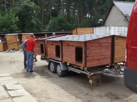 07.12.08 : hele 34 nye hundehuse er blevet leveret og taget hurtigt i brug på internatet. Der blev købt ind for omtrendt 38.000 kr ( inkl. polsk moms 22% )- dette kunne kun lade sig gøre netop fordi der findes nogle rigtigt søde og rare mennesker, som gerne vil støtte med lidt økonomisk assistance til nye hundehuse og dermed væsentlige forbedringer for hundene på det store, men fattige internat. Speciel tak til Olivers Petfood og Rude Biopatklinik.